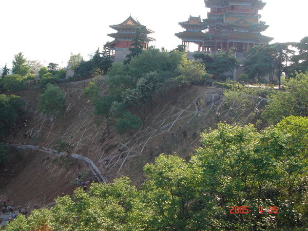 風景秀麗的獅子山位于南京城北部,山的四周依勢建筑明代古城墻,歷史悠久,山頂的閱江樓氣勢宏偉,為南京市著名景點之一。獅子山屬于丘陵山,坡度較陡,一般在30度左右,局部達45度以上。在長期的雨水沖刷、地質作用以及人為活動的影響下,獅子山山體共產生大小14處滑坡,滑坡體較大,不但破環了景觀,還嚴重影響游客和建(構)筑物的安全。