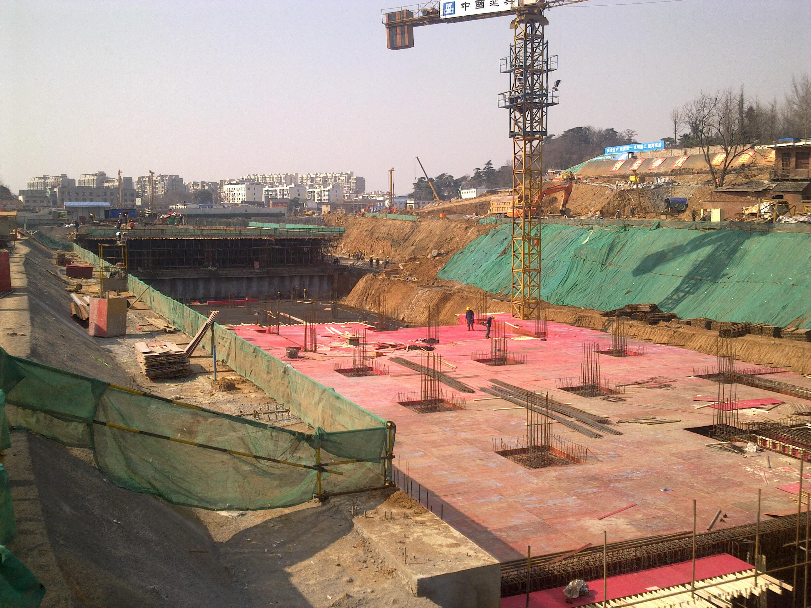 項目位于建康路和中華路交界處東北角,南京外運大廈南側。工程主樓為3幢15~16層,裙樓4~5層,整體設有4層地下室,基坑南北長170m,東西寬140m,基坑圍長608m,開挖深度20m。采用鉆孔灌注樁+4層砼支撐的支護形式,坑外施工三軸深層攪拌樁作為止水帷,基坑支護結構的安全等級為"一級"。南京市優秀工程測繪一等獎,江蘇省城鄉建設系統優秀勘察設計二等獎,江蘇省第十二屆優秀工程勘察二等獎。