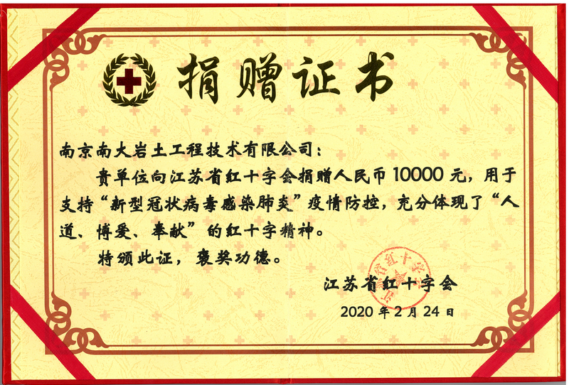 心系武漢,決戰疫情——南京南大巖土工程技術 有限公司捐款支援疫區