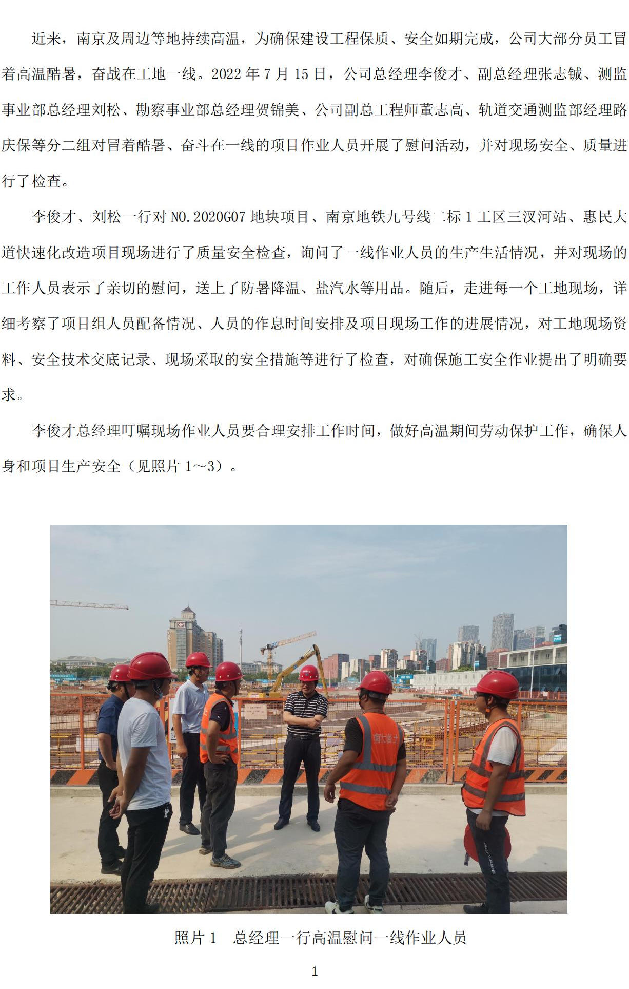 公司領(lǐng)導(dǎo)慰問一線員工并進(jìn)行安全、質(zhì)量檢查簡(jiǎn)報(bào)